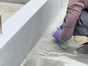 型枠を外し、バリと呼ばれる型枠との接地面に付着するコンクリートを綺麗に削ります。