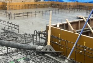 配筋検査が完了し、耐圧版コンクリート打設です