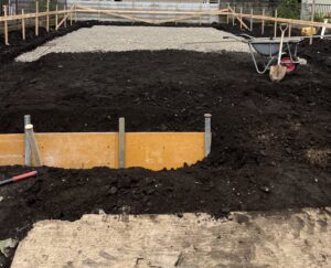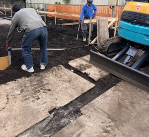 しっかり掘削作業を行い、砕石、転圧作業をします。