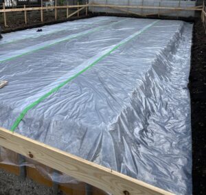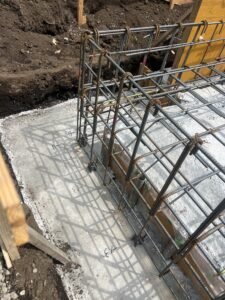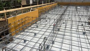 捨てコンクリート打設が完了し、しっかり乾いたのを確認し、配筋を組みます。